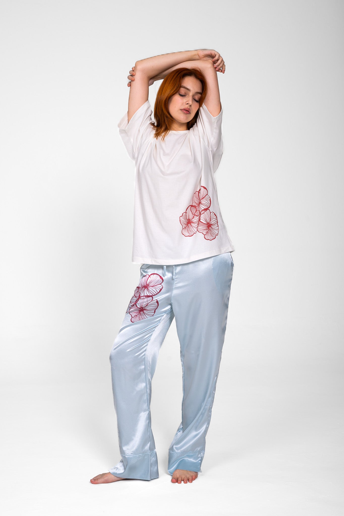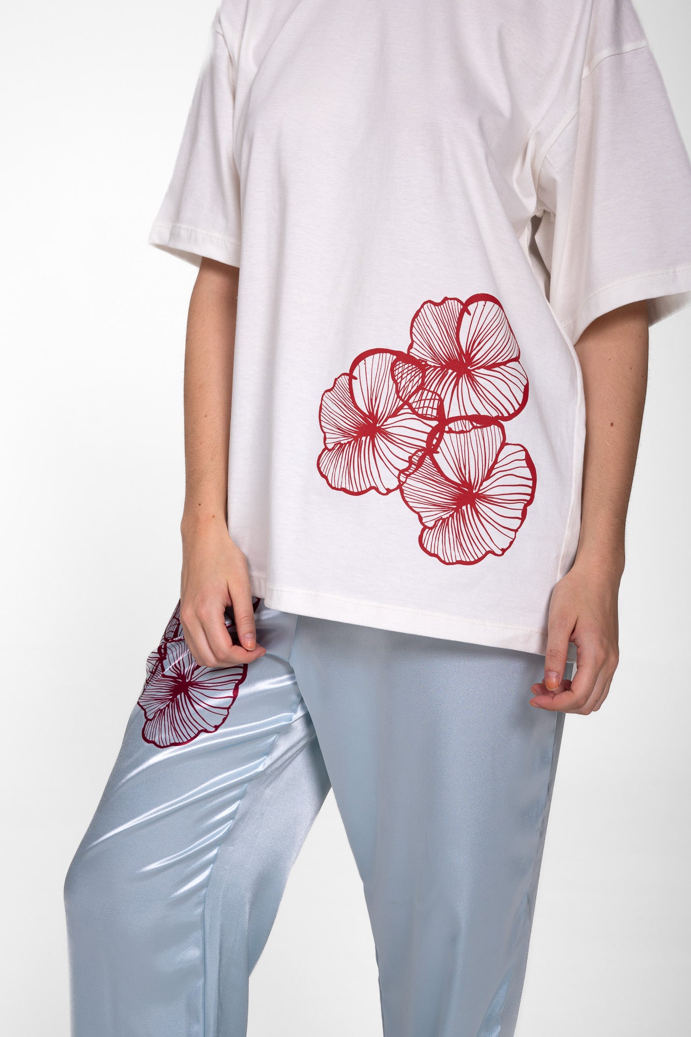 Remerón con estampa floral roja- 100% Algodón