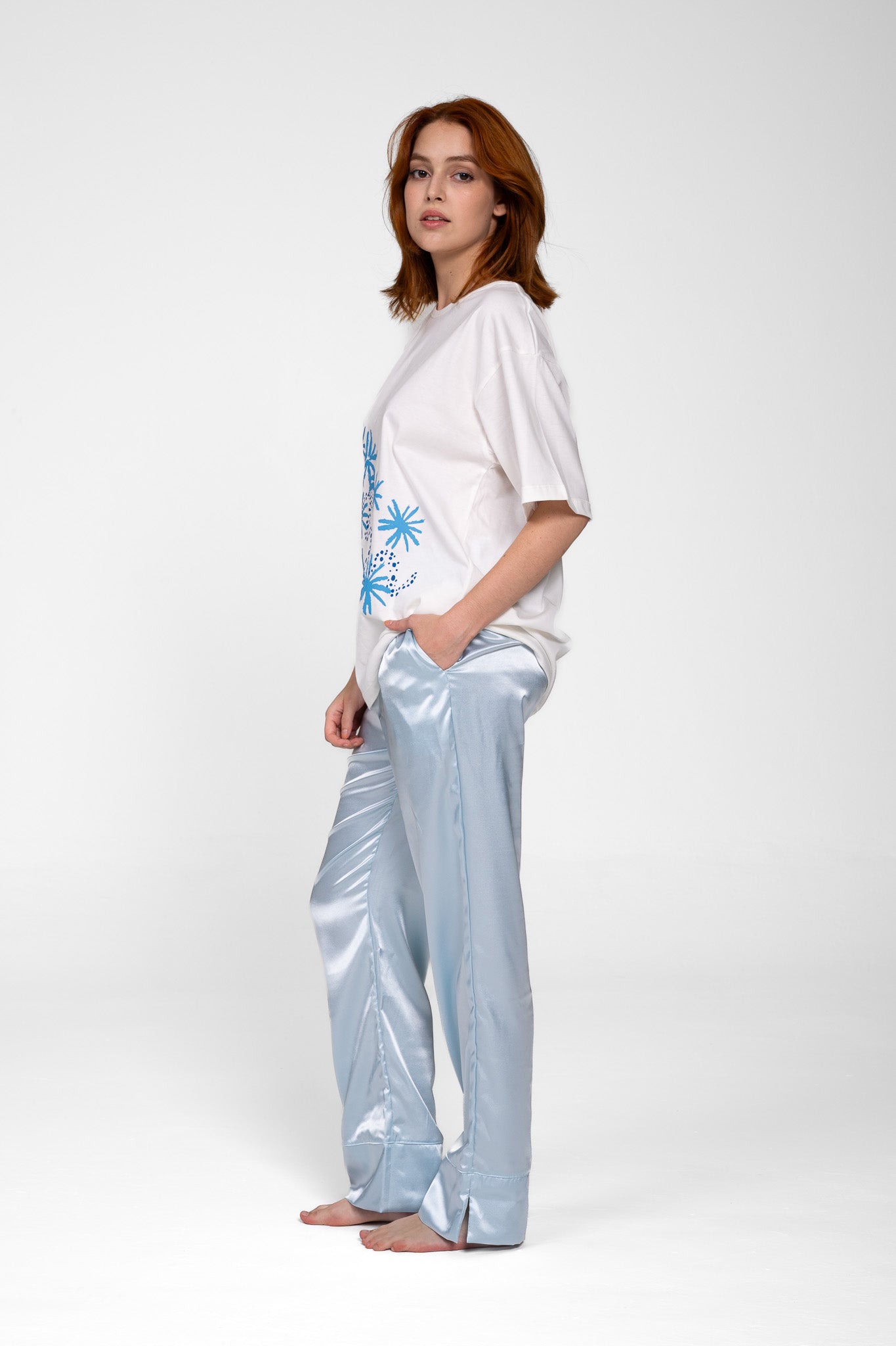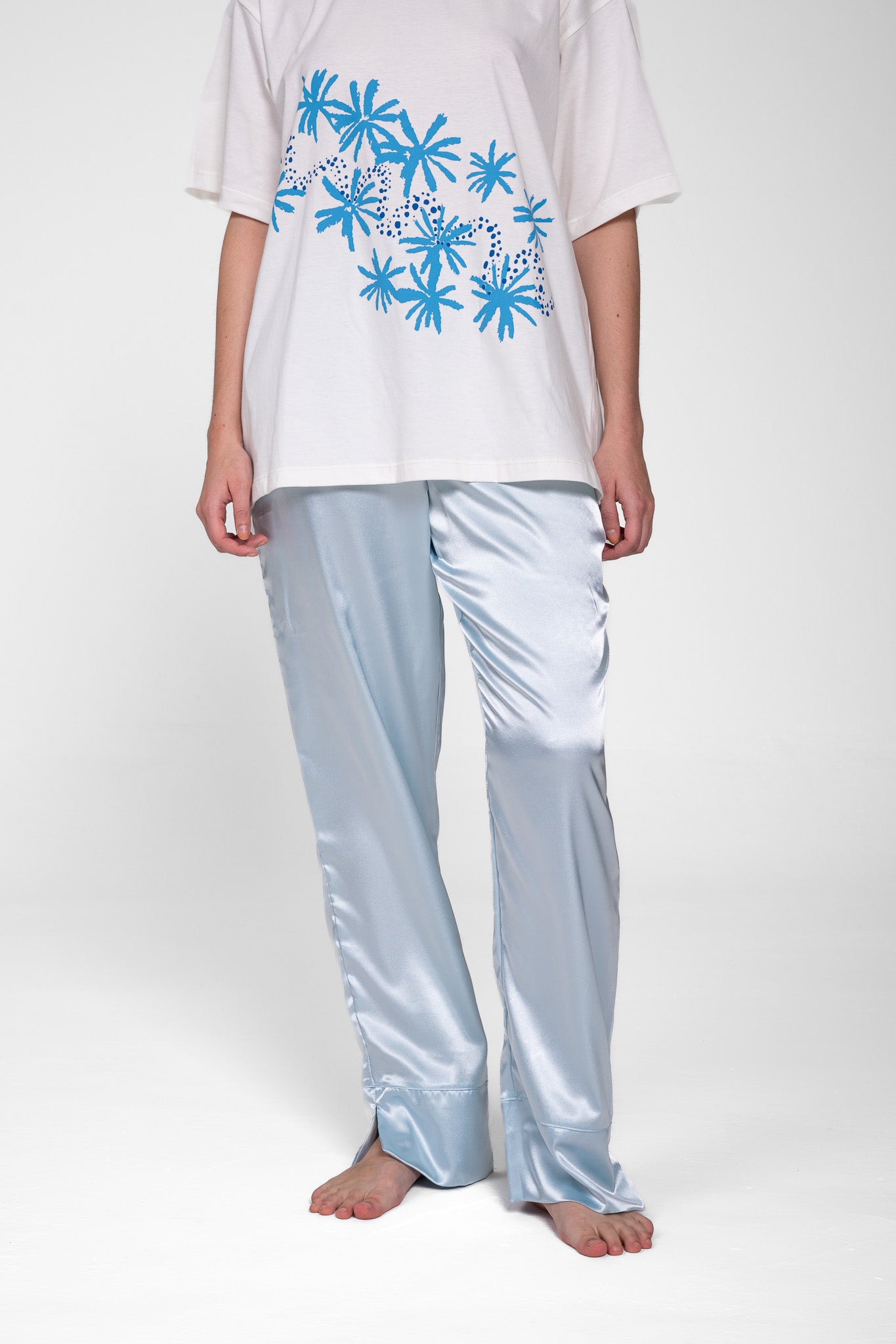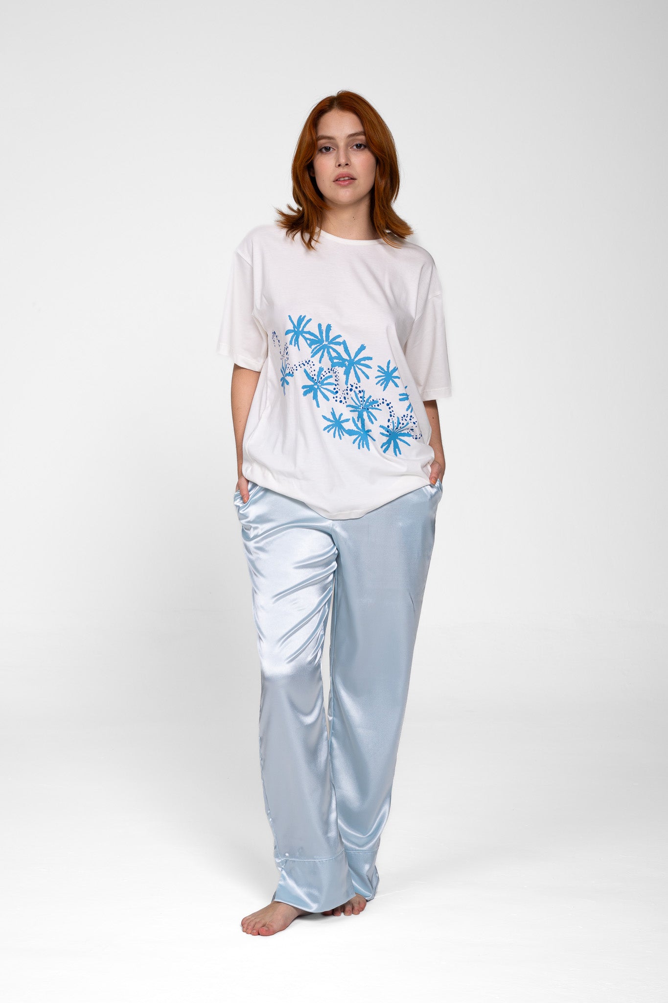 Remerón con estampa Tropical en celeste y azul- 100% Algodón